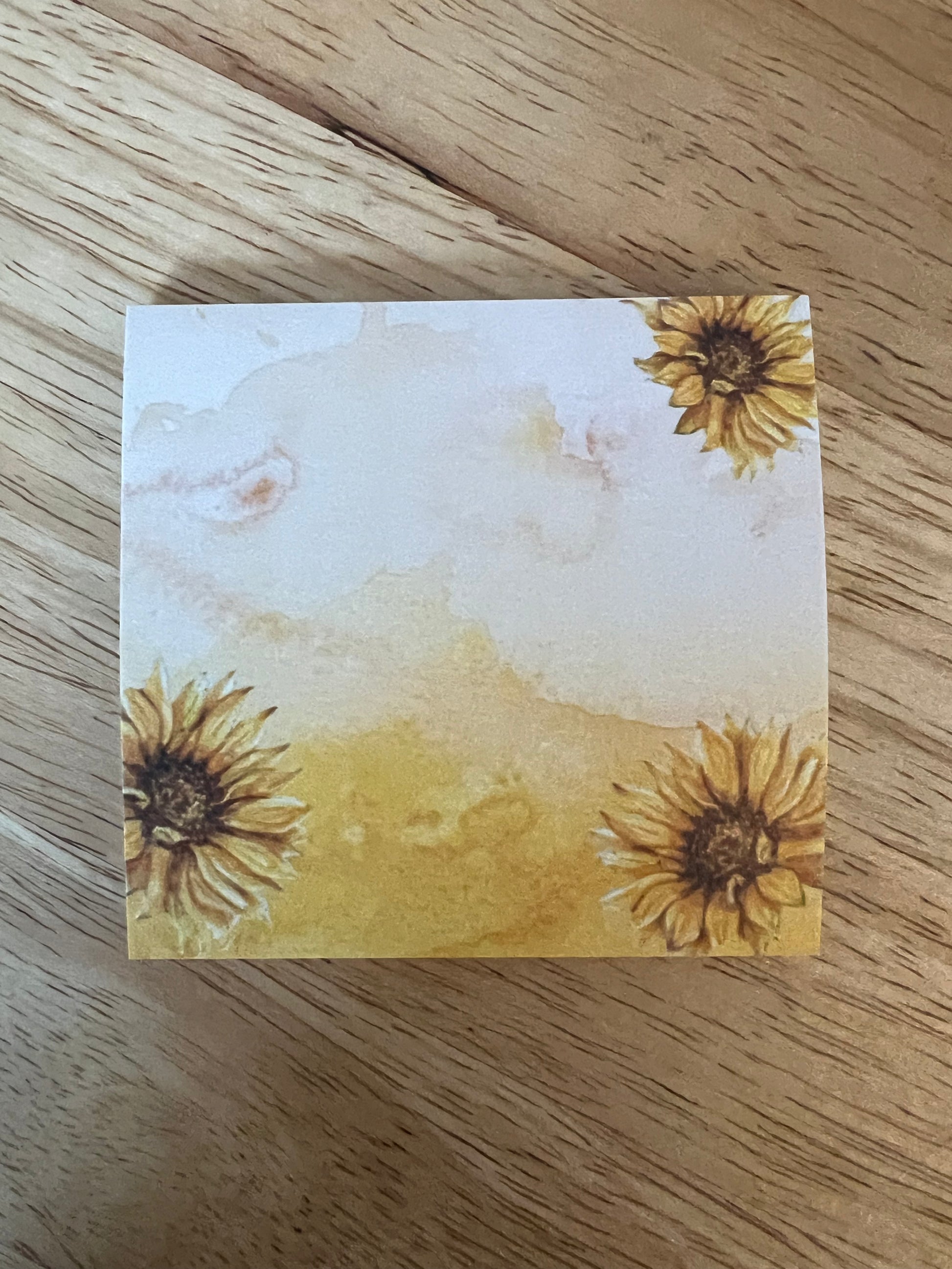 Discover the beauty of our Sunflower Sticky Note. Each 3x3 inch note features a stunning watercolor sunflower design with 50 sheets of stickiness. Perfect for reminders, notes, and creative inspirations. Be kind to yourself and the environment with this sustainable and stylish stationery.